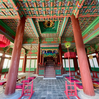 Next stop was the Gyeonghuigung palace Museum swiftly followed by the Gyeonghuigung palace, the secondary royal palace of the Joseon dynasty, often used in times of emergency. I think by the time we got to these final two visits, we were pretty touristed out, plus the weak heat from the sun had largely gone. However it was fair to say that the palace was in remarkable condition for something of a largely wooden and clay structure built in the 17th century, although there has been ongoing restoration. As we’d driven around the city, we’d seen a number of other palaces and they were all of a similar look and feel. Dark wood with mainly green paint work. The palaces don’t have glass, but have latticed doors with paper to shield them. Not exactly conducive to protect royalty from the elements. We learned that to the entrance to the palace there are two levels on the path. The king’s path is in the middle and slightly higher than the entrances for his subjects. Also, lining the route were granite plinths depicting the station of the king’s subjects so he could always ensure his subjects were present.